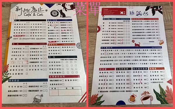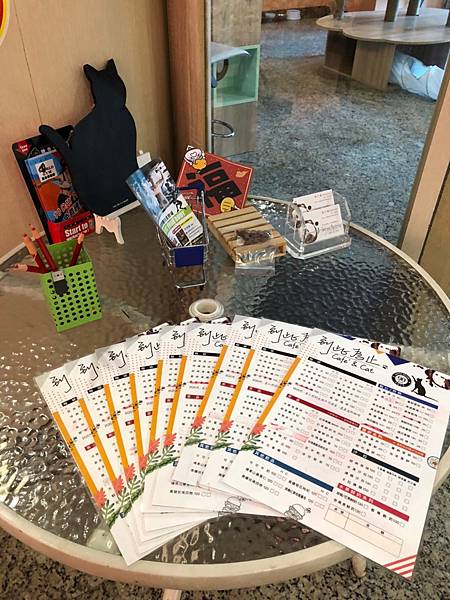 櫃檯旁的桌上擺著菜單,上面還有貓飼料可以購買讓你跟貓貓互動,但飼料是限量的怕貓貓吃過多不舒服