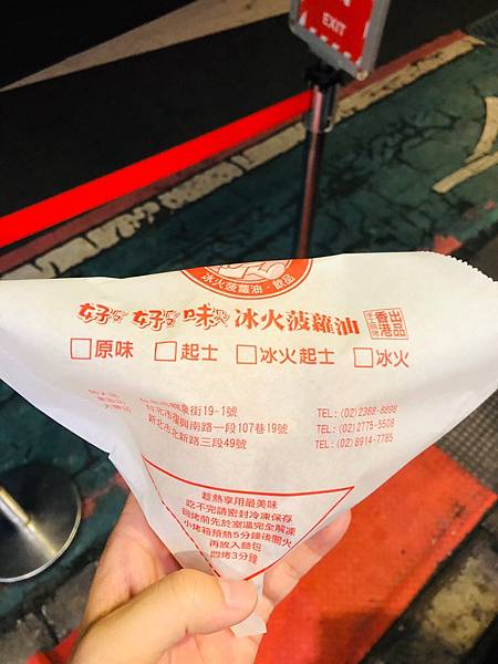 包裝長這樣,上面寫著各種冰火菠蘿油的口味跟其他分店的資訊