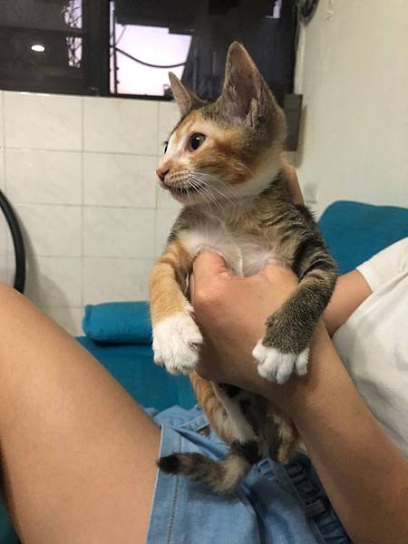 貓咪尾巴地方非常明顯短於正常貓貓,毛茸茸的一小團非常可愛。