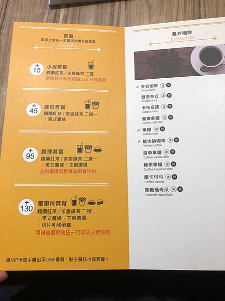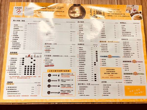 也有分很多類型,基本的燉飯義大利麵到下午茶點心都有