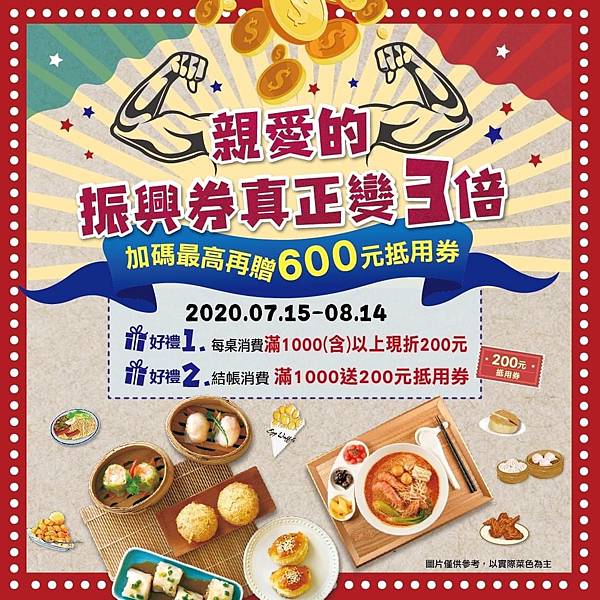 最近還有配合政府推出振興券的方案,每桌消費滿千折兩百