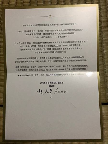 另外還會附送一封感謝信給你,就是Costco台灣區的總經理的感謝信