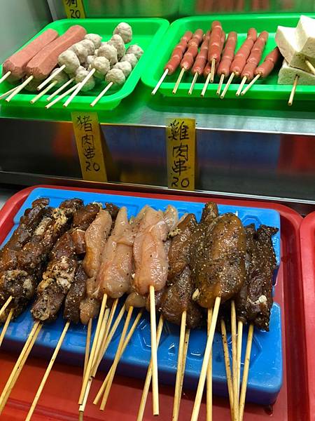 以上我們點了幾項大家來比較常吃的幾項,讓大家看看她誘人的樣貌(甜不辣、熱狗、香腸、雞皮、百頁、雞肉串)