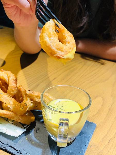 使用新鮮的洋蔥切片製作而成,而且他們是使用氣炸鍋炸的