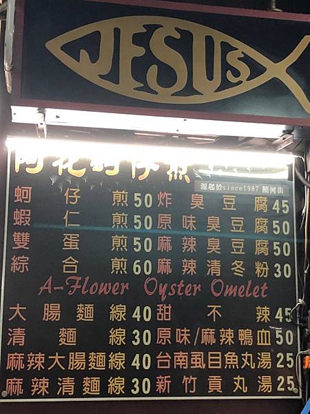菜單主要是以蚵仔煎、臭豆腐;甜不辣、麵線為主