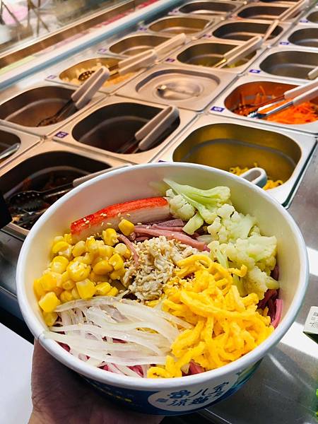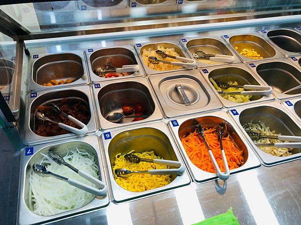 他的配菜每一種上面都有編號,選擇完後老闆就會幫你夾好夾滿