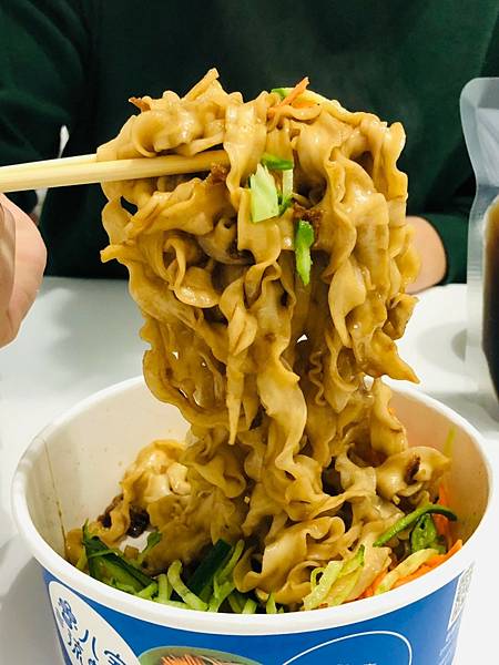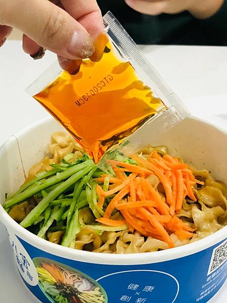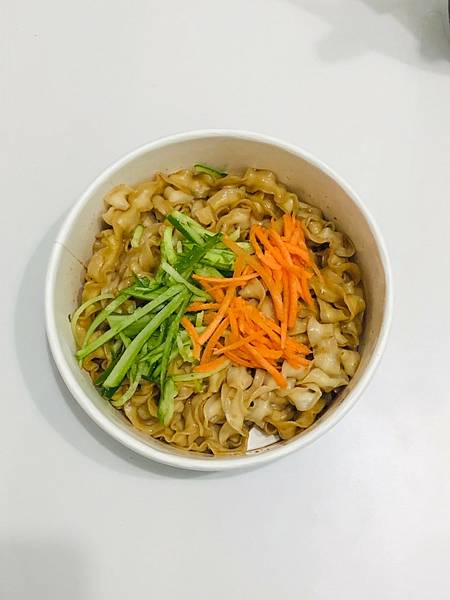 乾拌麵上面有用小黃瓜絲跟紅蘿蔔做點綴跟搭配