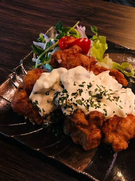 她的南蠻炸雞炸的非常金黃酥脆上面還有淋上塔塔醬