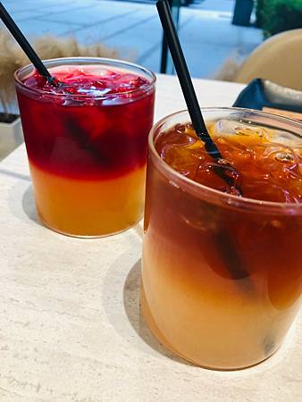 每一個人都會提供一杯餐廳的特調飲品(芭樂冰茶、橙香莓果茶)