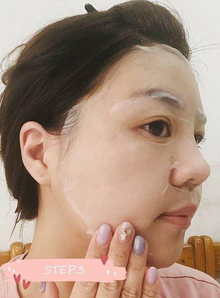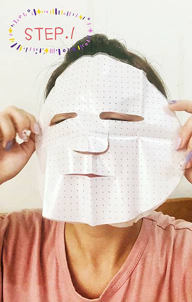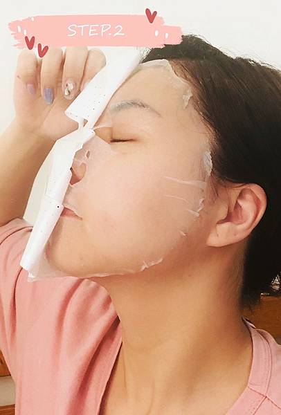 第 1 步:將珍珠膜及面膜一起平貼在臉上。