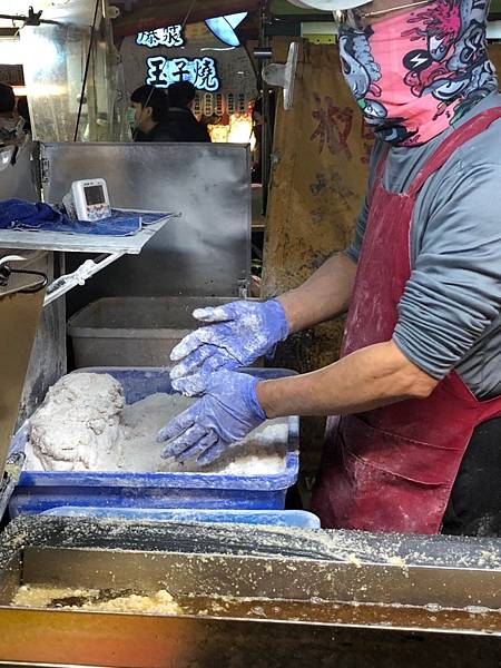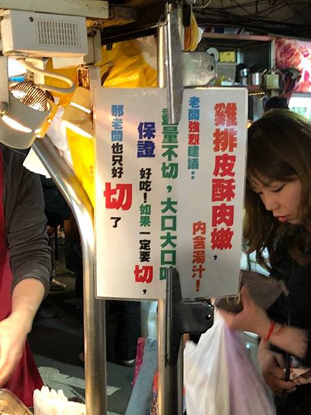 我們把雞排對半切,老闆還很貼心的把骨頭多的那塊做上記號,吃起來果然沒有辜負我的期待,饒河夜市必買必買的小吃呀~~!