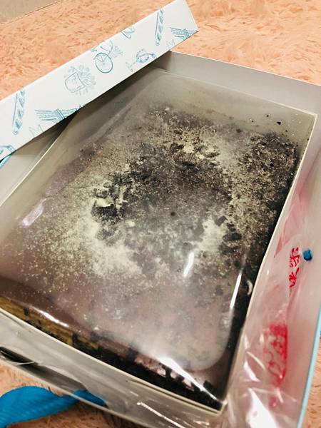 打開蛋糕有用一層透明的保護膜保護蛋糕