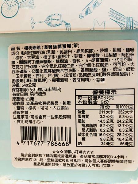 背面也有詳細的標明了蛋糕的用料跟成份