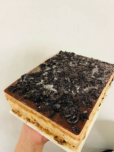 海鹽焦糖蛋糕由厚厚的焦糖包裹著與巧克力脆片完美地融合
