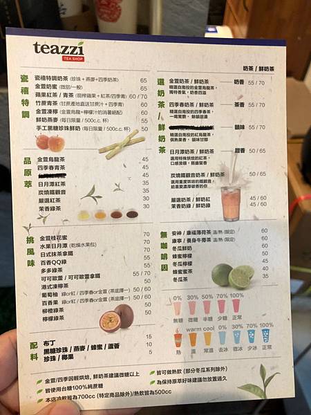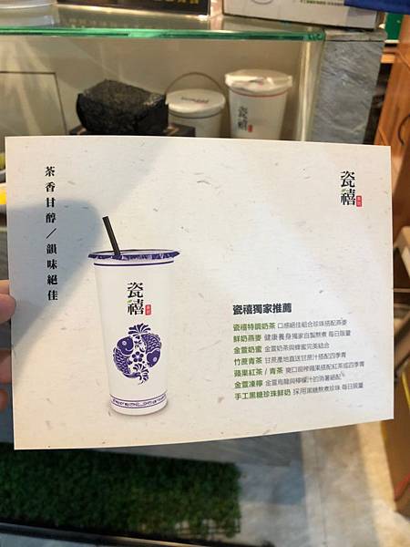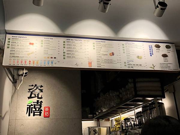 店面上方就有大大的扛棒把所有飲料的品項都放上去了!最右邊還有介紹使用的茶葉呢~