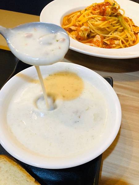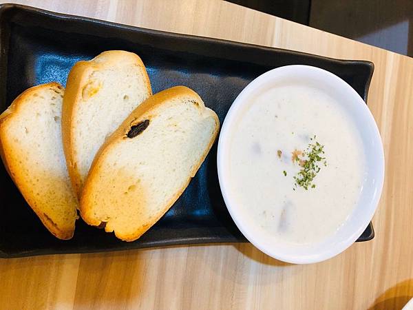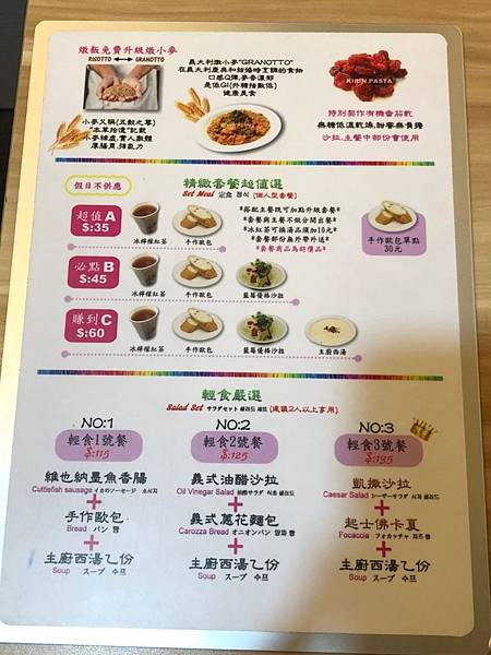 接著來介紹一下我們的餐點,精緻套餐的部分假日無法做點選,只限平日唷!所以這次我們點的是輕食嚴選115有一份小菜跟麵包還有湯品非常划算