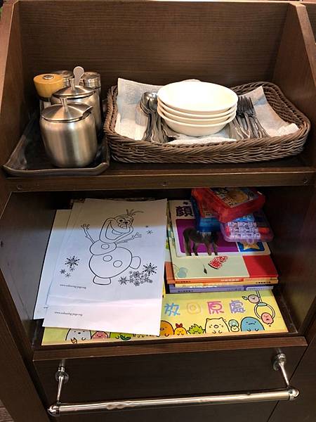 餐具跟醬料的部分需要自取,裡面還有附一些兒童用品,對帶小孩的食客們有一大福音,可以讓孩子吃飯外還能畫畫