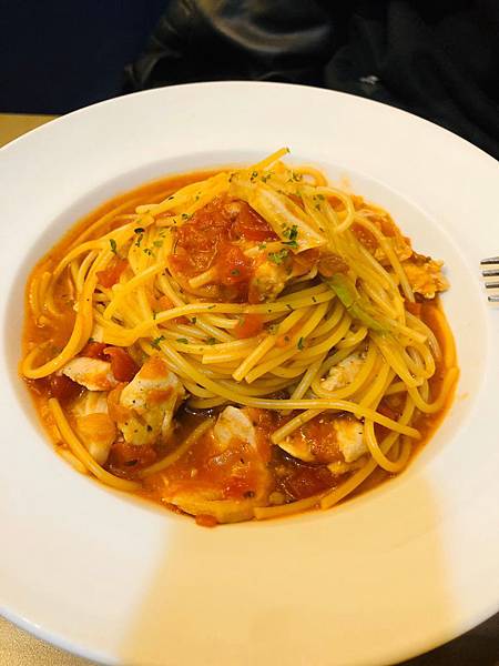 拿坡里番茄雞肉麵,滿滿的番茄跟雞肉吃起來爽度爆表,非常讚!適合想吃粗飽的朋友