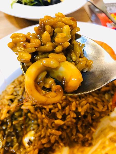 裡面有滿滿的魷魚、蛤蜊讓咖哩飯除了咖哩味還有海鮮的鮮甜非常好吃