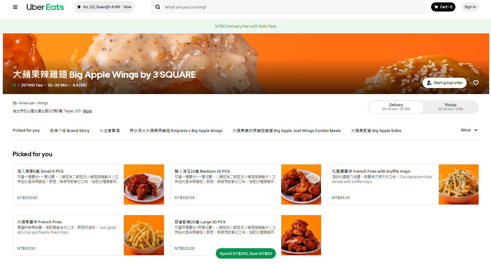 但是 大蘋果辣雞翅跟UBEREAT有合作,讓妳在家就能吃到美食