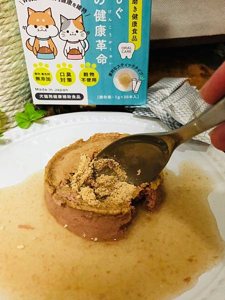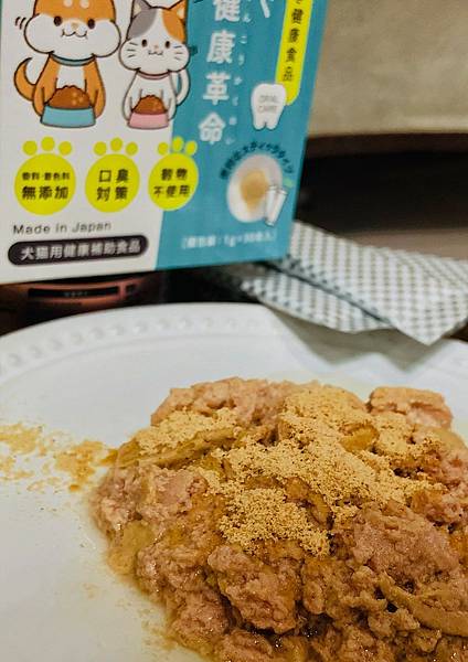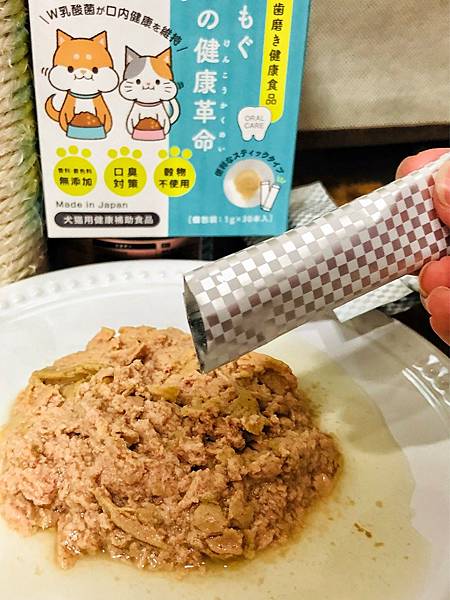 但他們很體貼的是口腔保健拌飯粉的口味是柴魚跟雞肉味道
