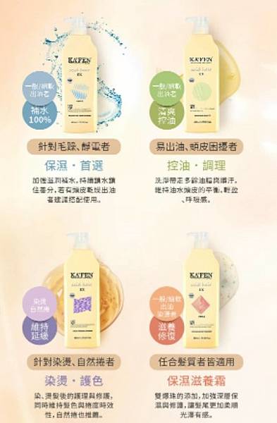 KAFEN 亞希朵EX版洗護組的保濕滋養系列