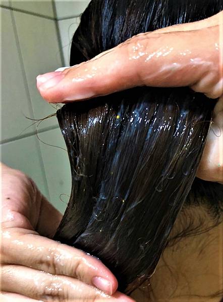 好好搓揉讓滋養霜可以吸收到髮絲內