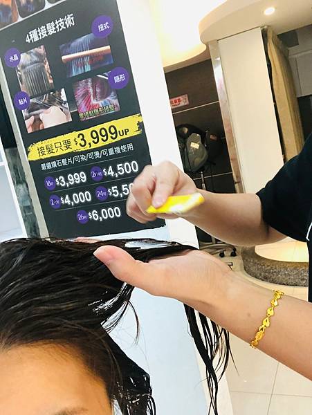 設計師會將剛剛滿滿一盒的護髮霜厚厚的抹在頭髮上