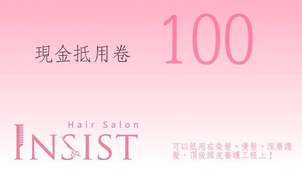 現在只要加入線上預約系統Insist Hair Salon還有現金抵用卷100元
