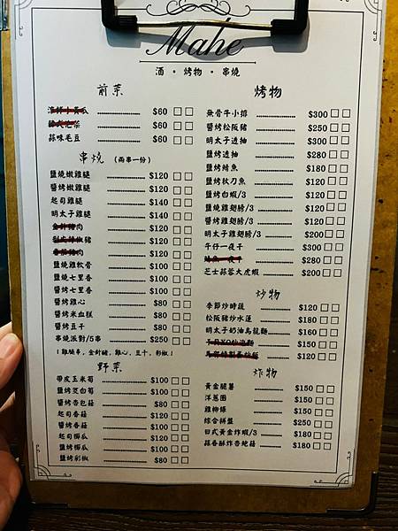 菜單品項蠻豐富的,有炒物、野菜、串燒、烤物、炸物、酒等等