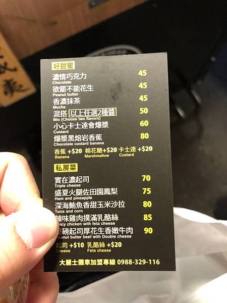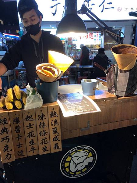 士林夜市可以堪稱全台數一數二的夜市,每個夜晚都會有各國各式各樣的人穿梭在夜市裡面,當然裡面的美食也是五花八門,當然吃完各式美食之後一定要來些甜食啦,就在我們這樣想的時候印入眼簾的是一家小攤車的可麗餅店,就讓我們趕快去瞧瞧吧~