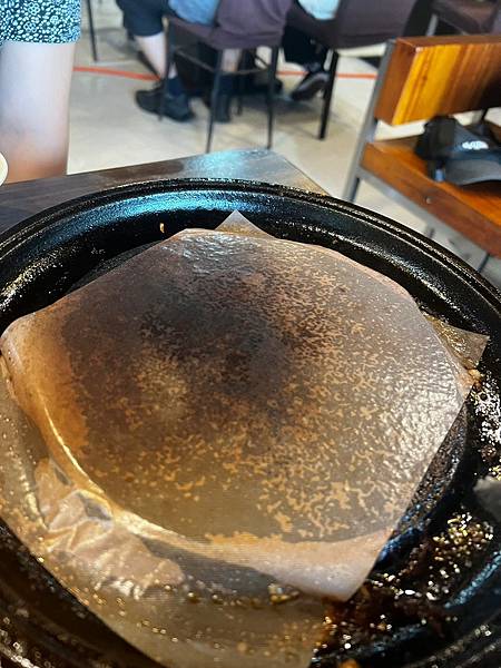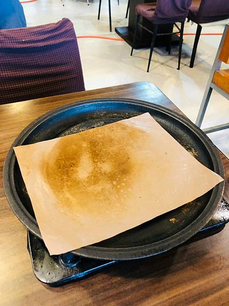 再來是烤肉的部分也是很重要的唷!他會提供一片墊紙放在銅盤上烤